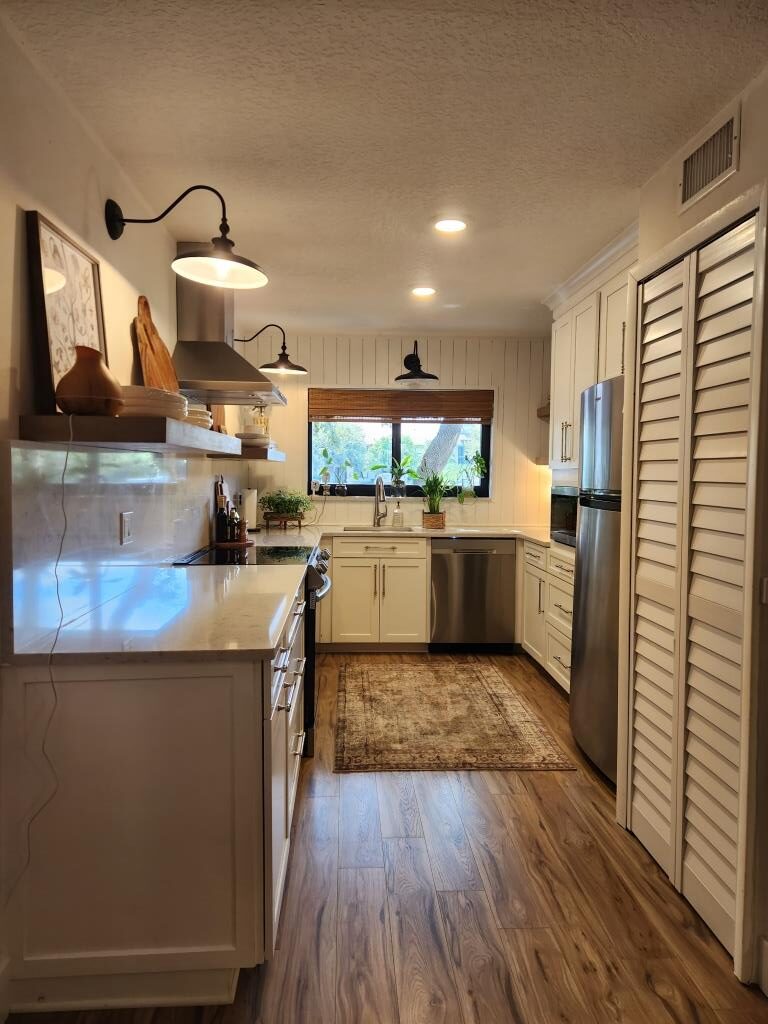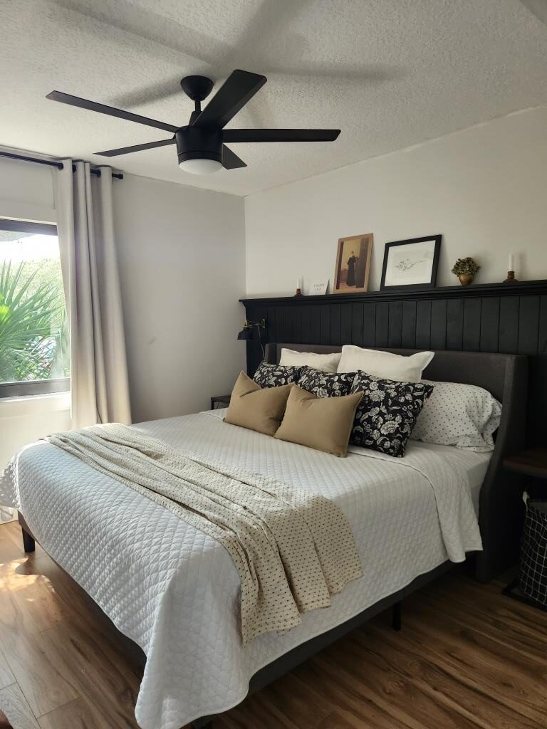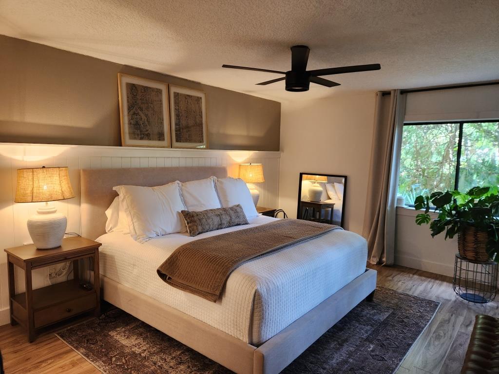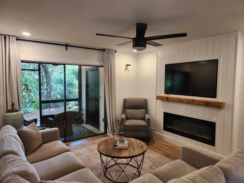 - Amenities: Assigned Parking for 103, Cable TV, Central Heating and Air Conditioning, Digital entry lock, Electric Fireplace, Fully Equipped Kitchen, Hair dryer, Laundry in Unit, Screened Patio, Wi-Fi