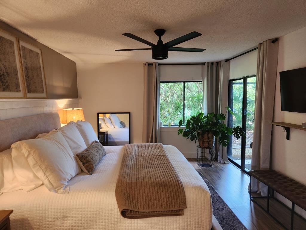 - View: Your screened patio opens to the live oak and palm tree canopy which borders the Pathway to the Ocean