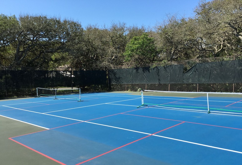The racquetball court is outdoors and located at the end of one of Sea Woods many nature trails. Be sure to reserve your time slot.